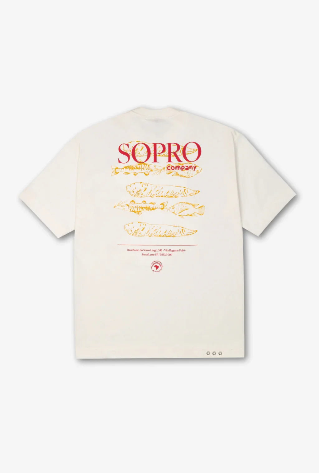 Inspirada nas bancas de peixe das feiras livres cheio de cor, detalhe e cheiro de mar no ar. A Barão traduz esse caos bonito no traço dos peixes estampados nas costas e na frente.