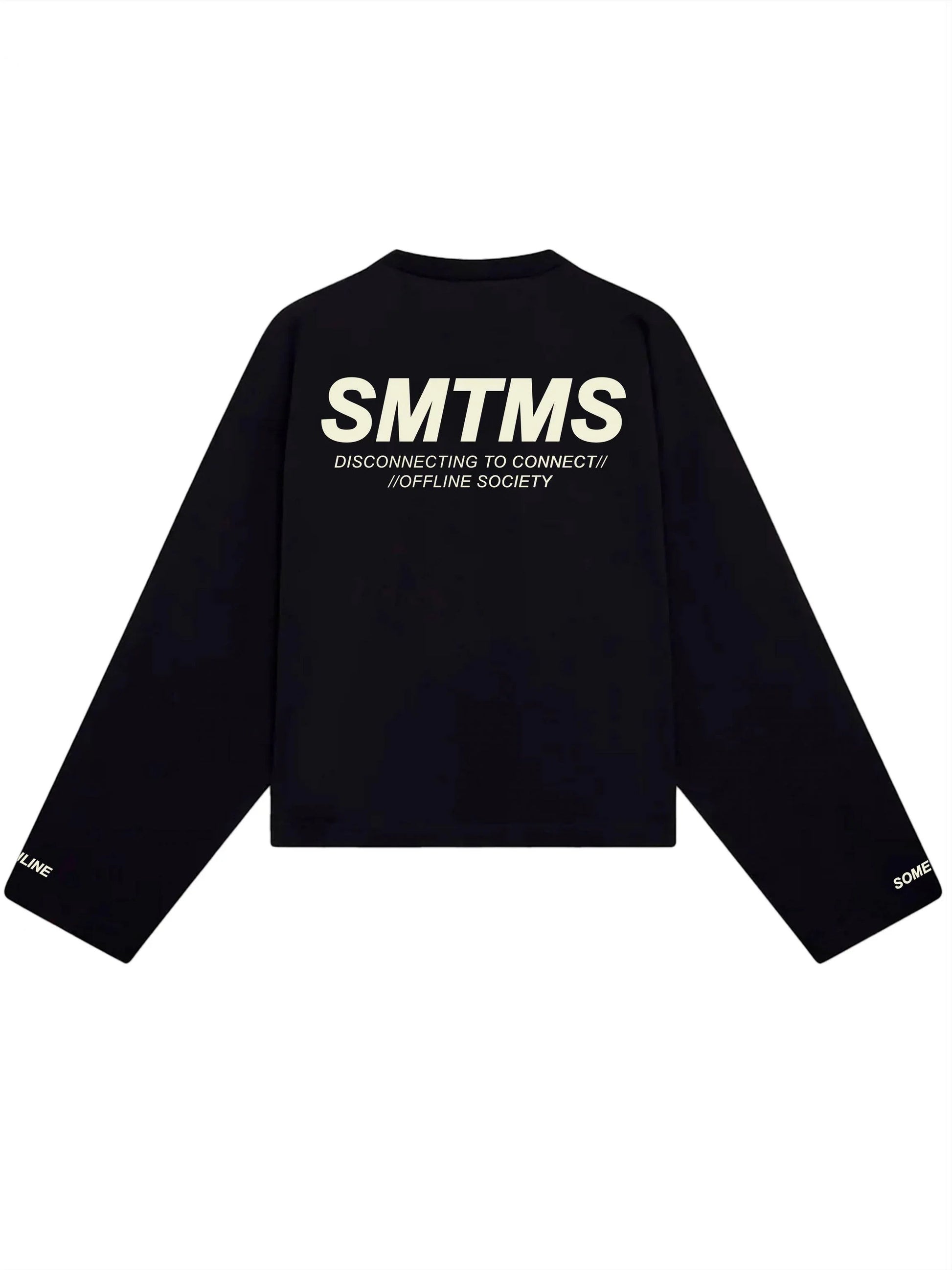 Esta camiseta manga longa SMTMS preta apresenta uma modelagem boxy e mangas alargadas, proporcionando conforto e estilo para o uso diário. Produzida com 100% algodão, garante maciez e durabilidade, ideal para dias frios e momentos ao ar livre.