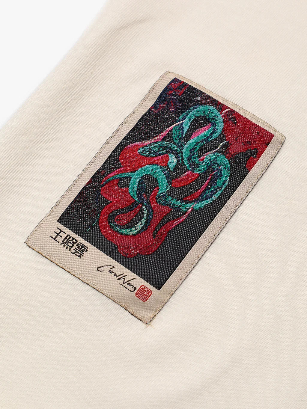 Nas mangas, aparece em bordado o ideograma 小云 (xiǎo yún), que significa pequena nuvem em mandarim - uma homenagem à artista Carol Wang, que assina a collab.