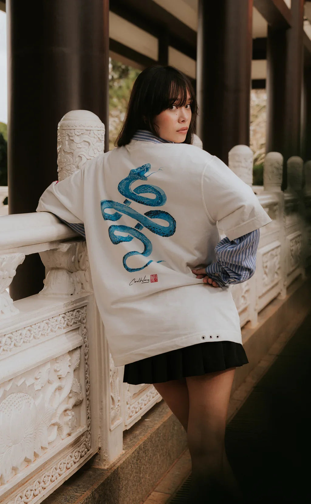 A Cascavel Oversized é uma camiseta que atravessa fronteiras entre moda e arte, carregando simbolismo em cada detalhe.