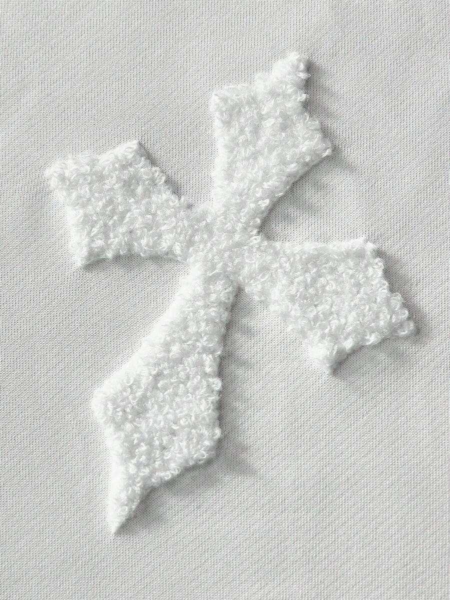 O Conjunto Street Cross é a união perfeita entre o conforto do estilo oversized e a estética ousada do streetwear de luxo. O grande diferencial está nos patches de cruzes em textura felpuda espalhados estrategicamente pela camiseta e pela calça, criando um contraste de relevo único sobre o branco puro.