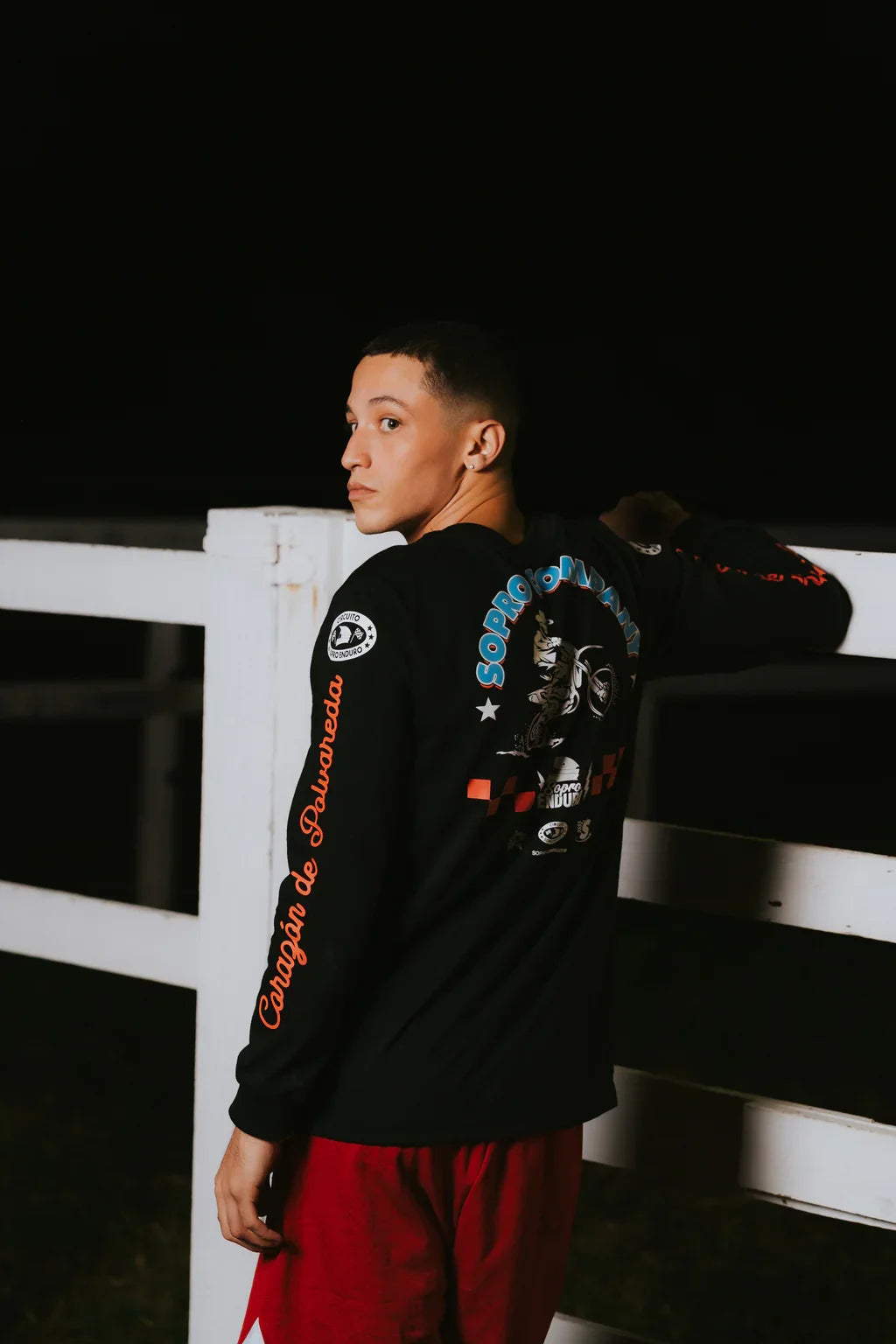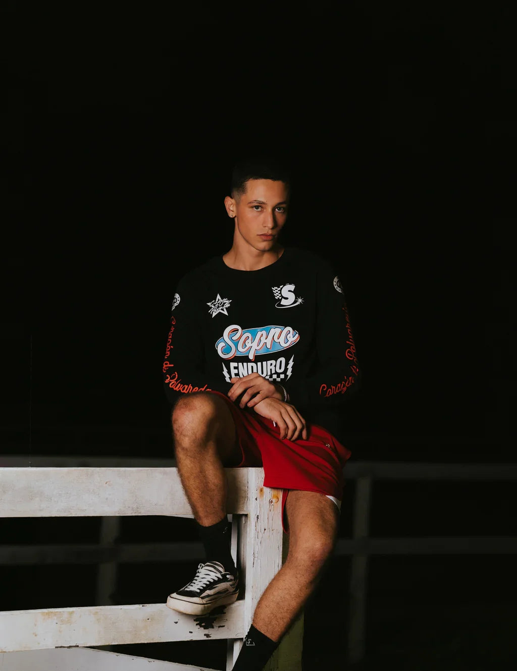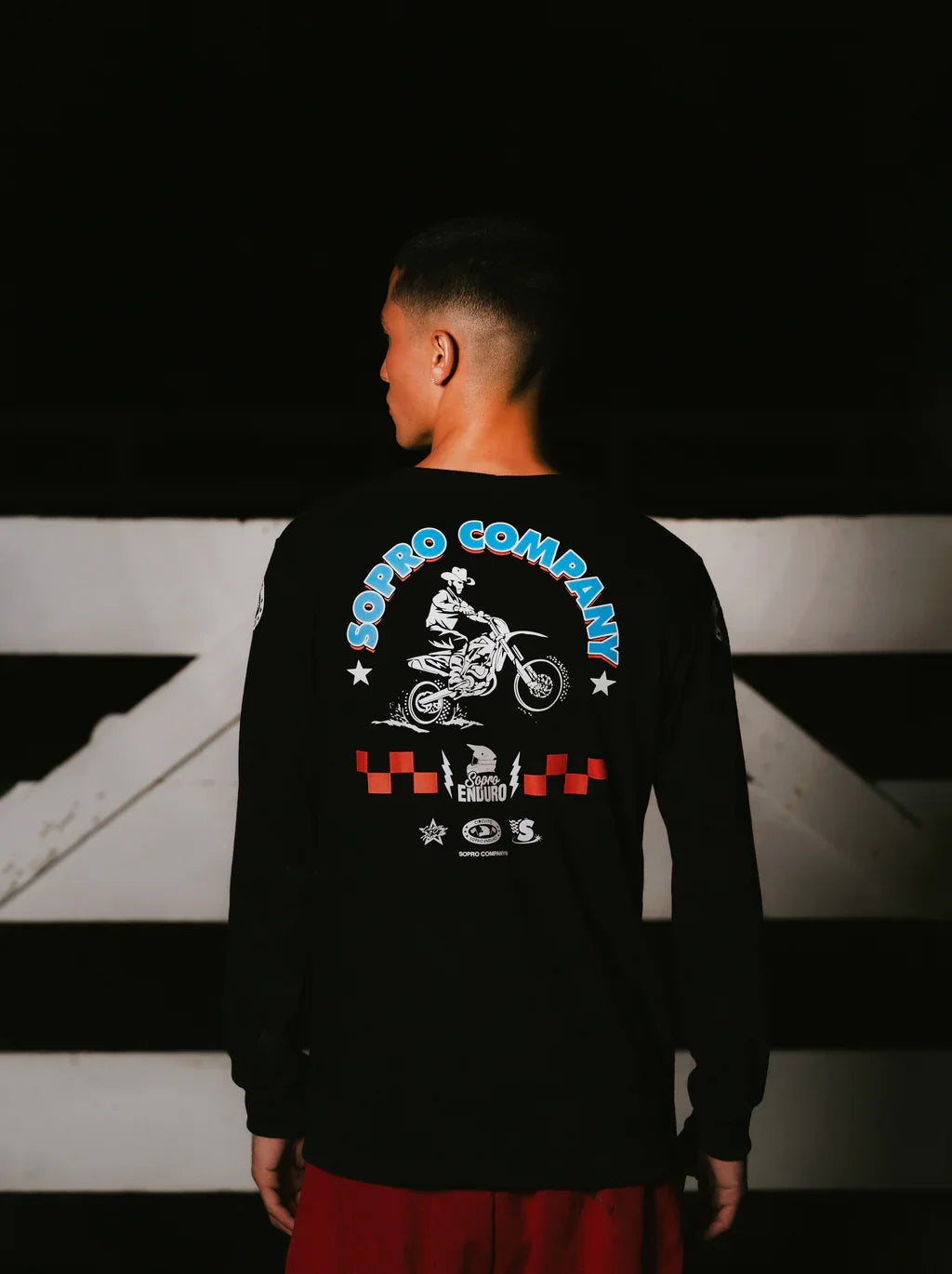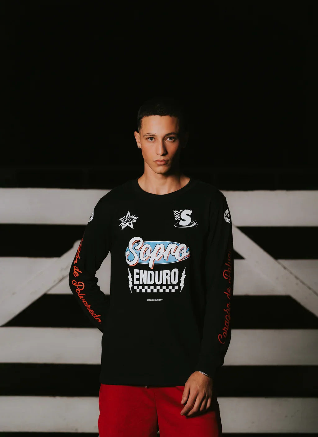 Na parte da frente possui uma tipografia retrô, acompanhada de logos que remetem a patrocinadores referentes às corridas de enduro. Já nas laterais o nome da coleção se estende por toda manga. Em suas costas o design é complementado por um vaqueiro sob uma motocicleta, mostrando a junção das modalidades do Enduro.