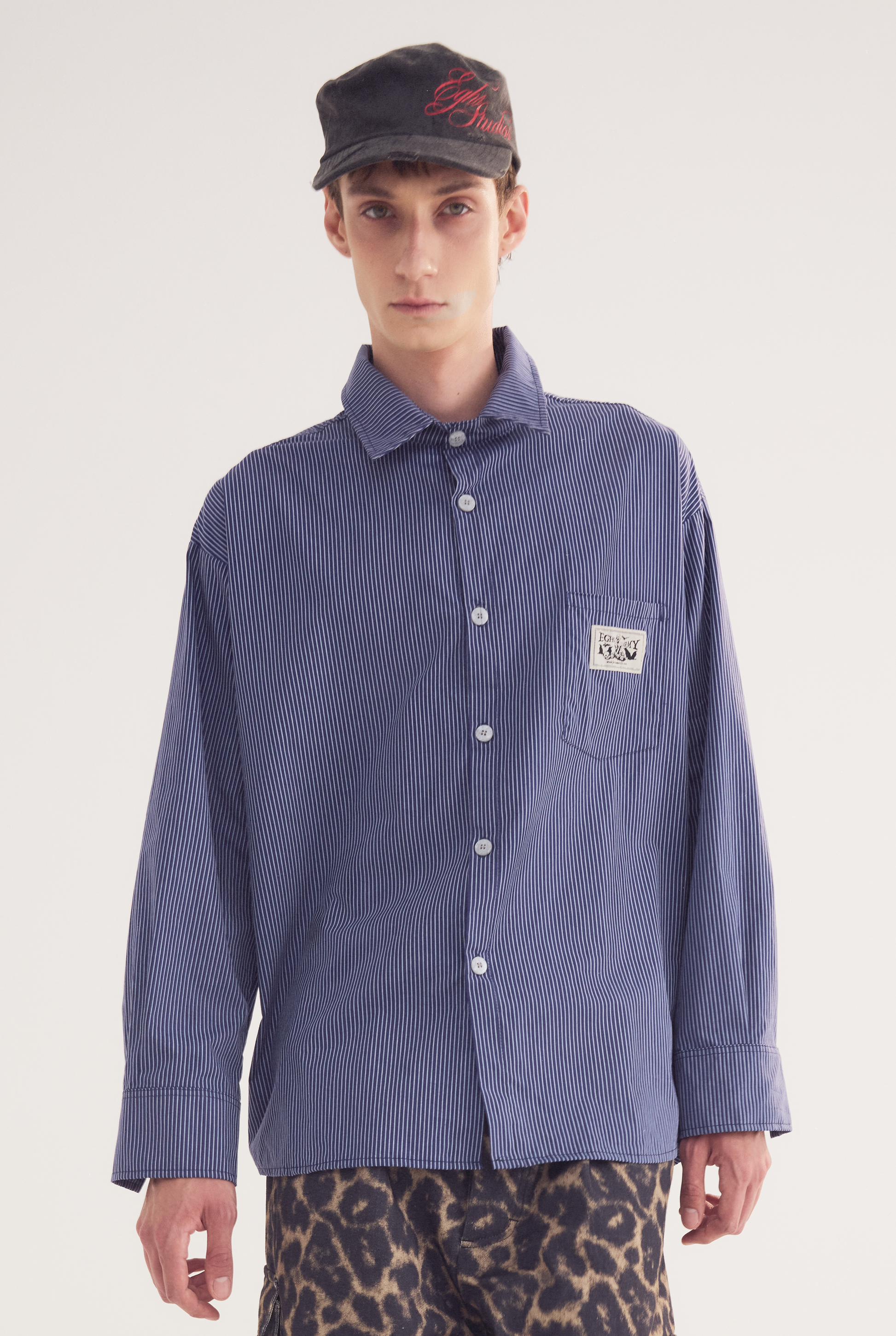 Camisa em tricoline de alta qualidade, listrado em fio tinto e modelagem relaxed casual. Fechamento em botões externos na vista e no punho, aplicação de etiqueta decorativa no bolso.