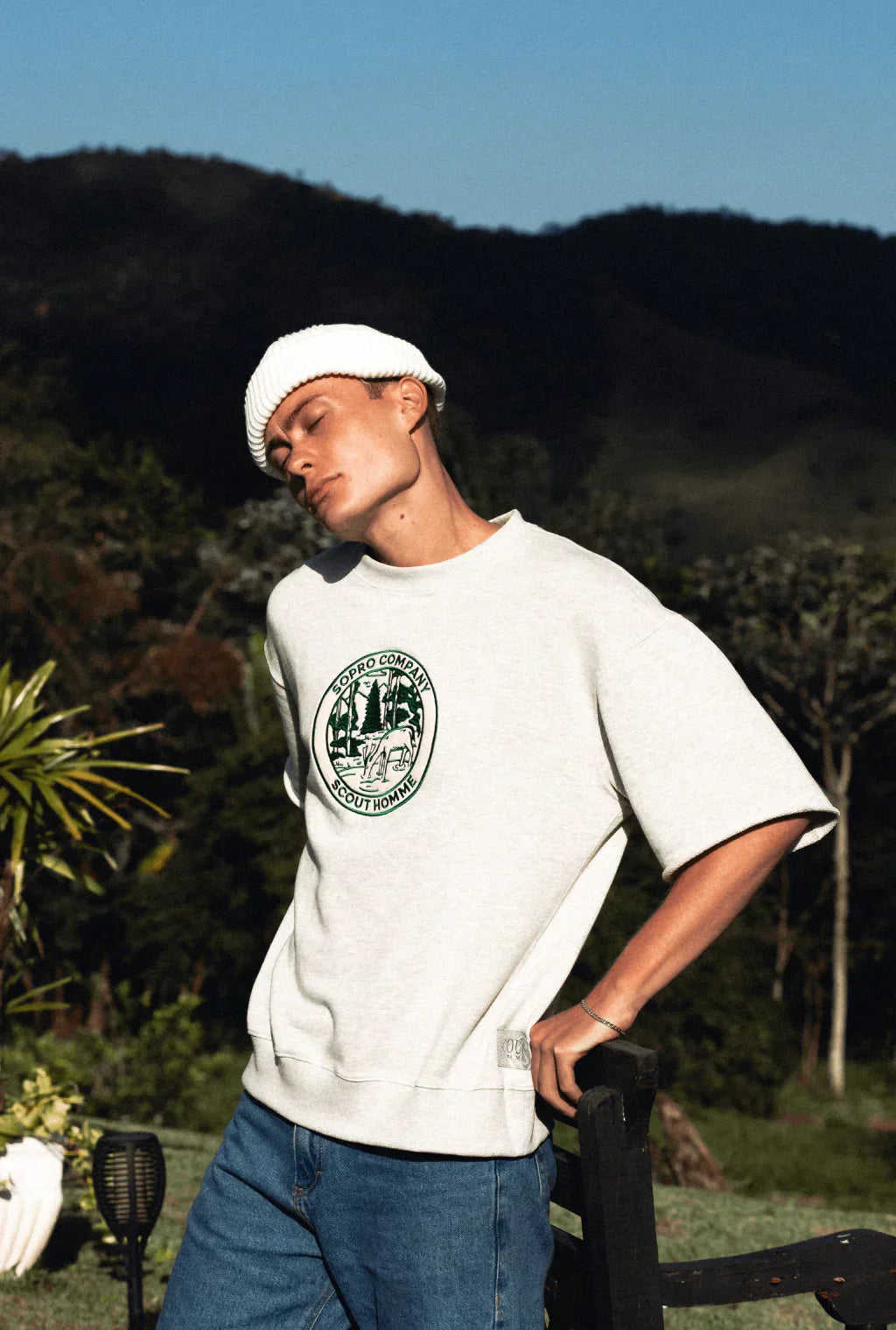 Este modelo oferece corte moderno e diferenciado, conta com customizações como apliques bordados e etiquetas exclusivas da coleção, proporcionando um toque de sofisticação e autenticidade a quem veste.