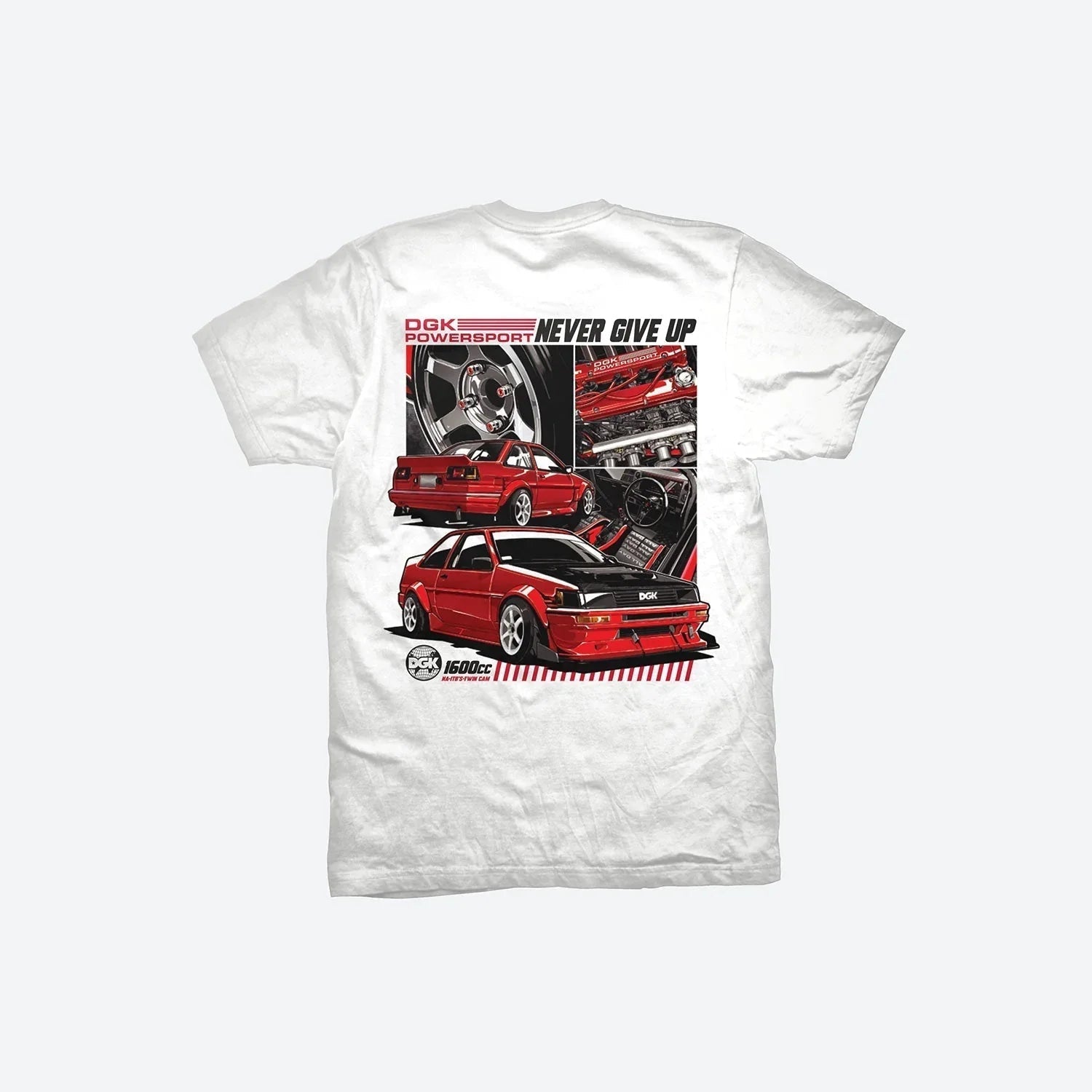 O uso de algodão premium garante máxima respirabilidade e conforto, enquanto as costuras reforçadas evitam desgastes prematuros, tornando-a ideal para uso intenso. A estampa é feita com tinta de alta fixação, que mantém as cores vibrantes mesmo após diversas lavagens. A modelagem unissex atende a diferentes estilos e proporciona liberdade de movimento, elemento essencial para quem vive a cultura urbana e do skate. Com a Twin Cam T-Shirt, você incorpora a essência da DGK com uma peça exclusiva e funcional, perfeita para o dia a dia e para quem busca estilo aliado à qualidade.