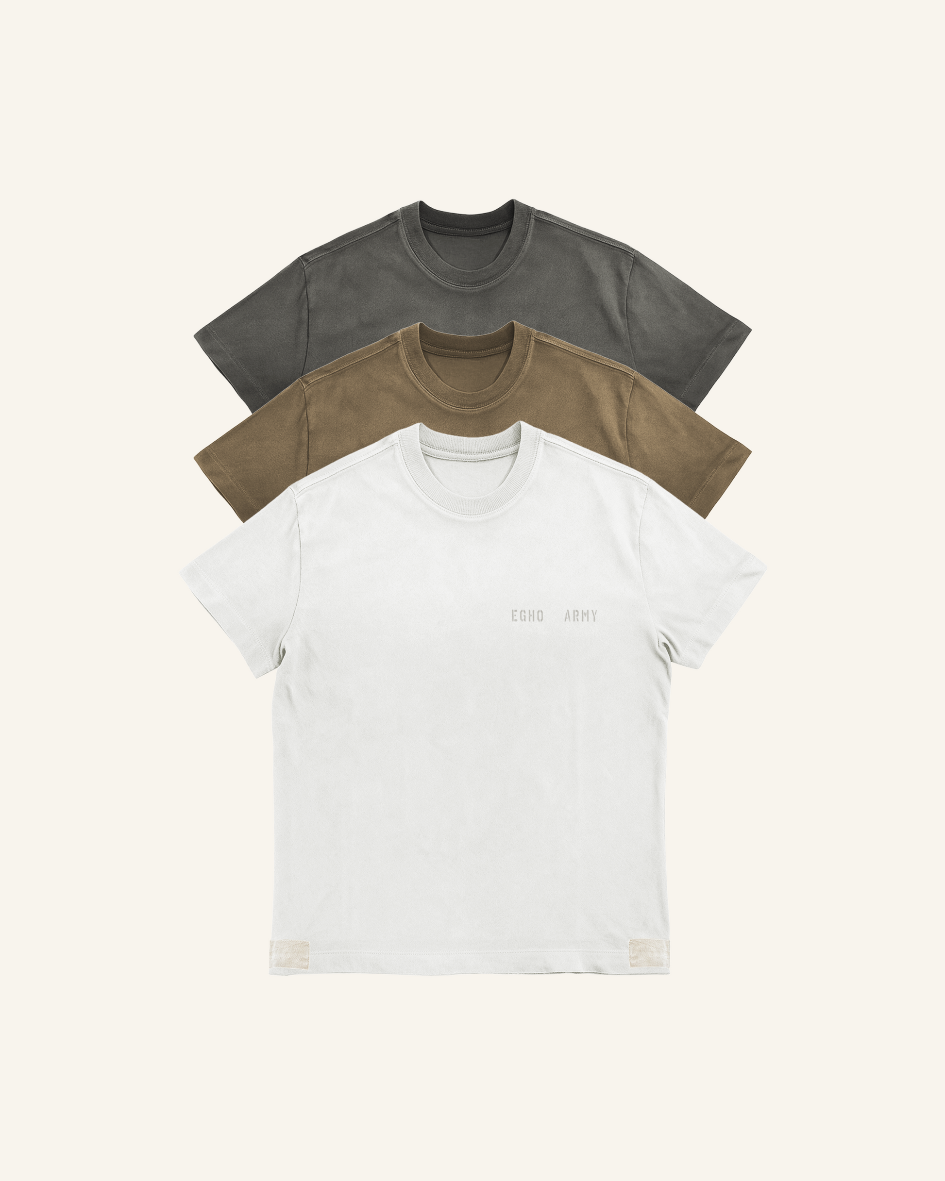 Modelagem regular da EGHO, com caimento reto e gola justa. Confeccionada em malha 30/1 de 180 GSM, 100% algodão de gramatura leve, com costura single stitch. Aplicação de gorgorão na lateral da peça. Tecido leve e toque macio resultam em uma peça solta e confortável. Estampa em silk de subtom com acabamento desgastado.