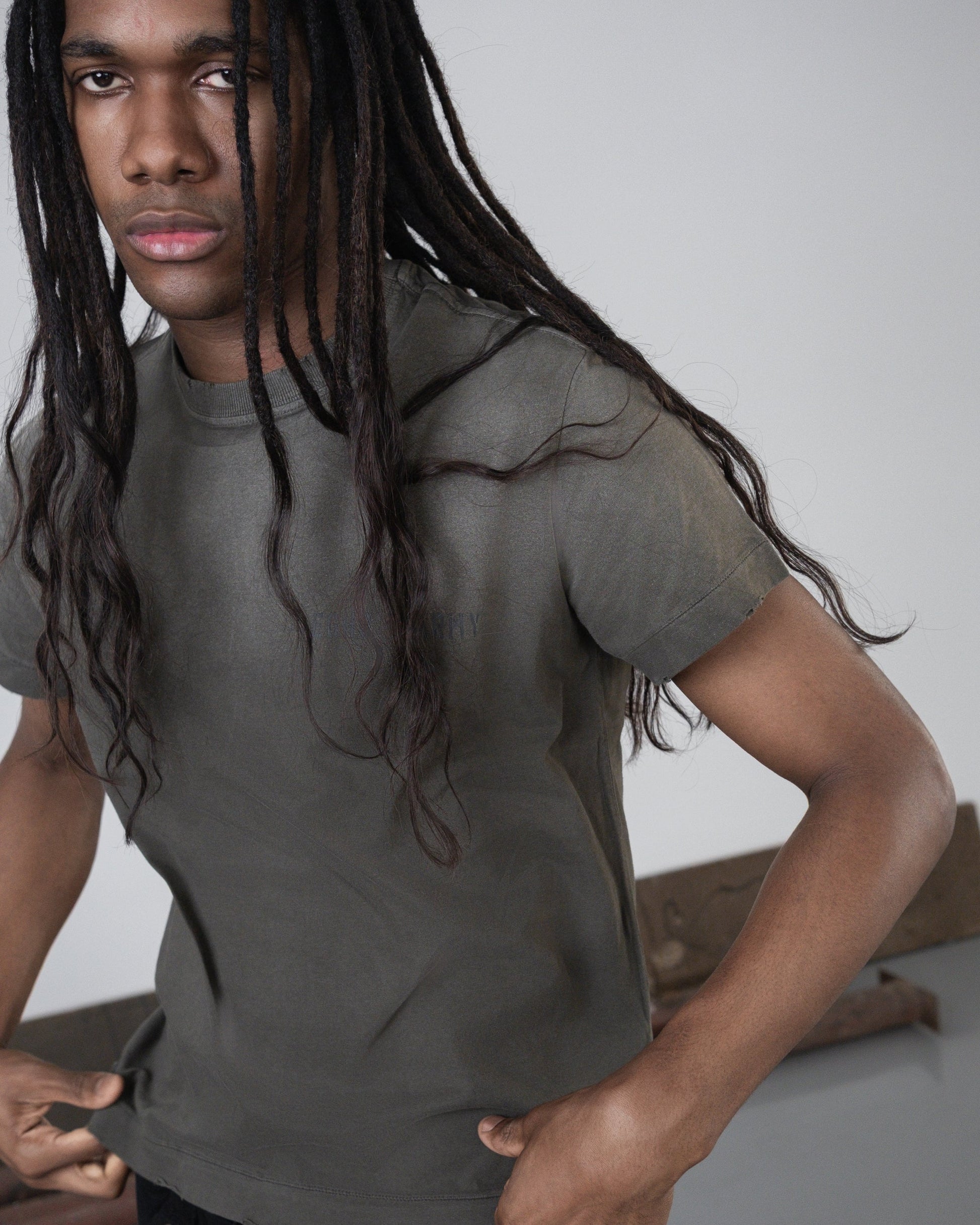 Modelagem regular da EGHO, com caimento reto e gola justa. Confeccionada em malha 30/1 de 180 GSM, 100% algodão de gramatura leve, com costura single stitch. Aplicação de gorgorão na lateral da peça. Tecido leve e toque macio resultam em uma peça solta e confortável. Estampa em silk de subtom com acabamento desgastado.