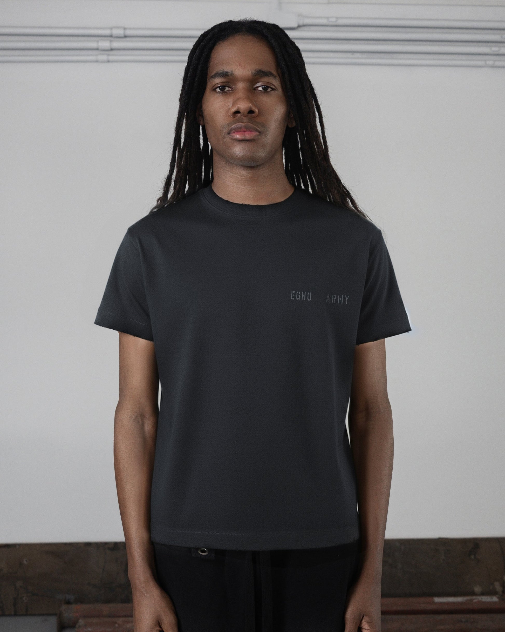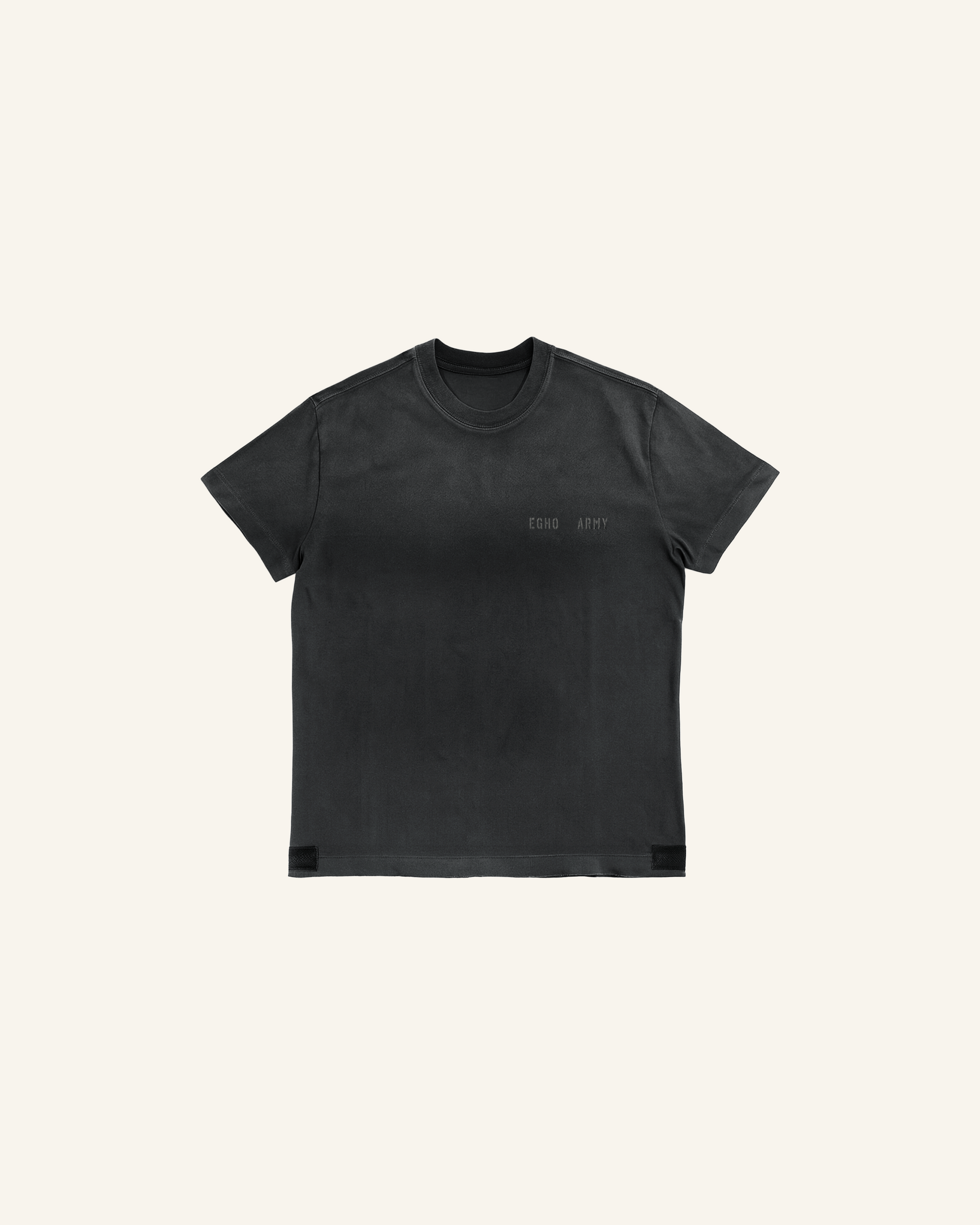 Modelagem regular da EGHO, com caimento reto e gola justa. Confeccionada em malha 30/1 de 180 GSM, 100% algodão de gramatura leve, com costura single stitch. Aplicação de gorgorão na lateral da peça. Tecido leve e toque macio resultam em uma peça solta e confortável. Estampa em silk de subtom com acabamento desgastado.